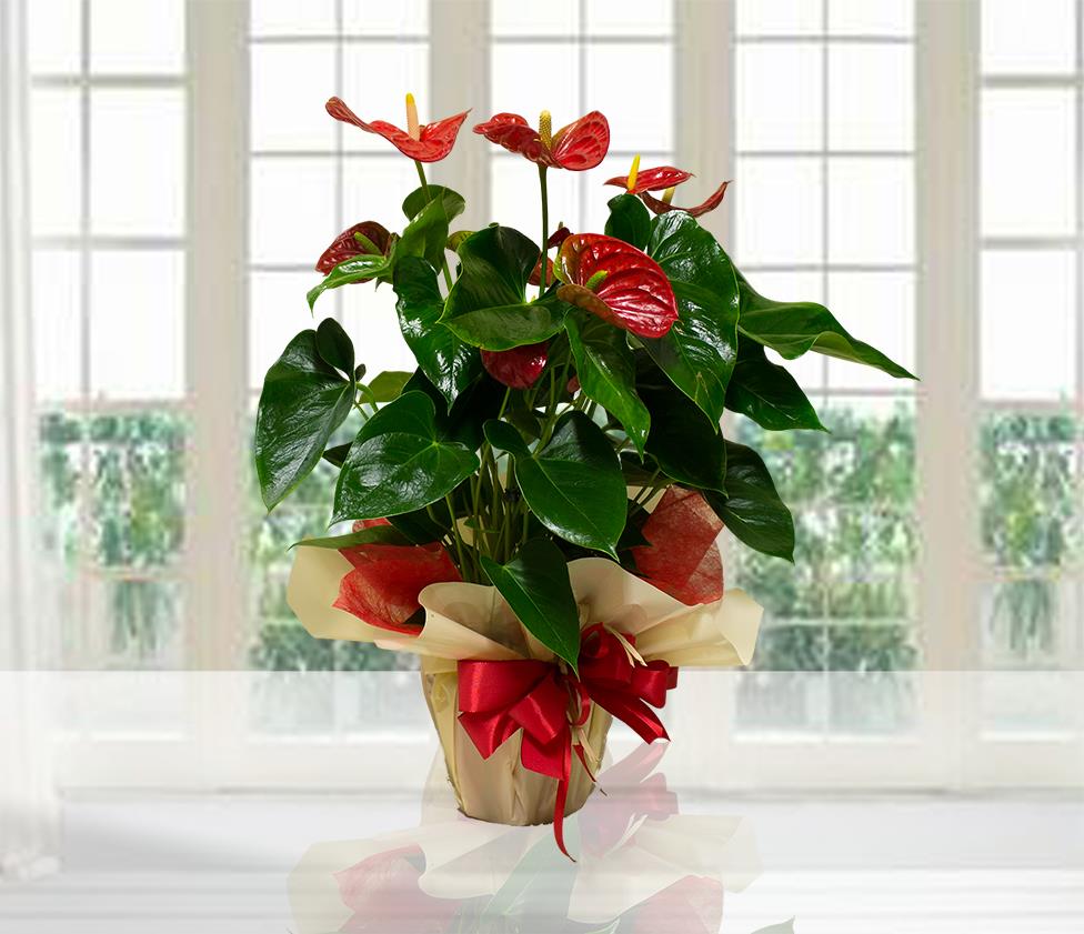 Pianta di Anthurium Rosso in elegante confezione (h 60cm.)