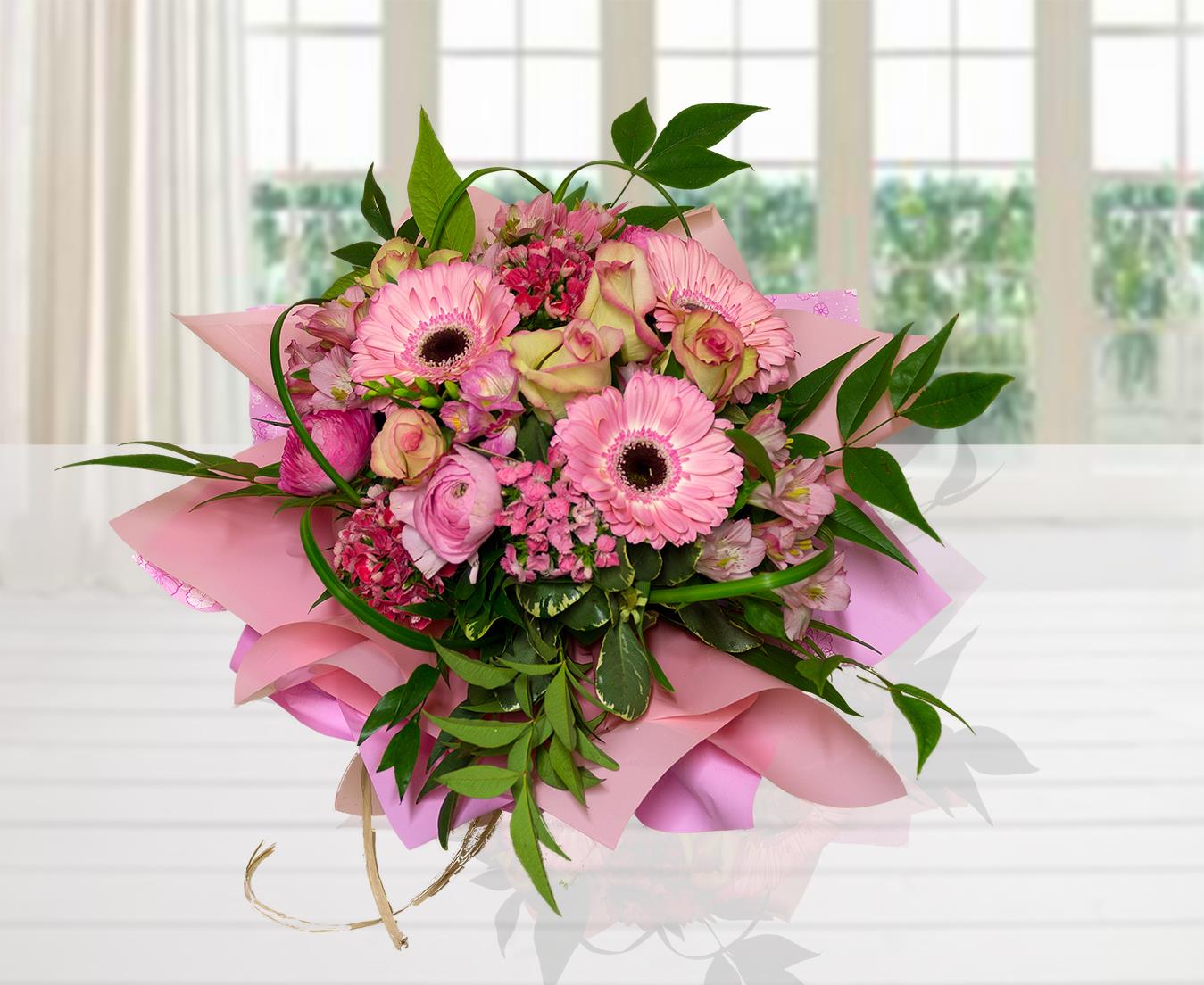 L’eleganza di questo bouquet di rose, gerbere e fiori di campo vi conquisterà e con la sua delicatezza saprà regalare tante emozioni a chi lo riceverà
