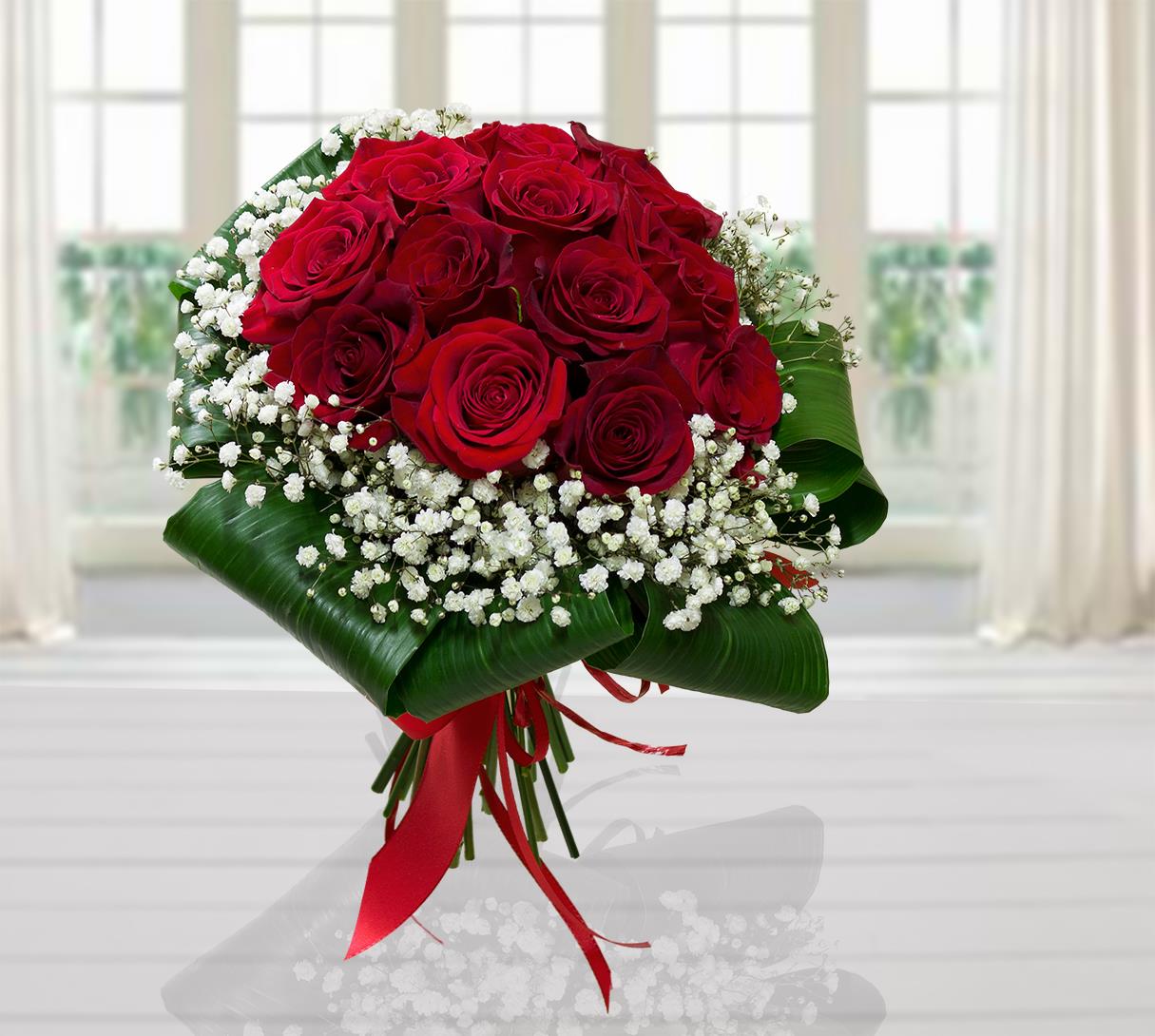 Esplode l’amore in questo bouquet di 15 rose rosse da lasciar senza fiato