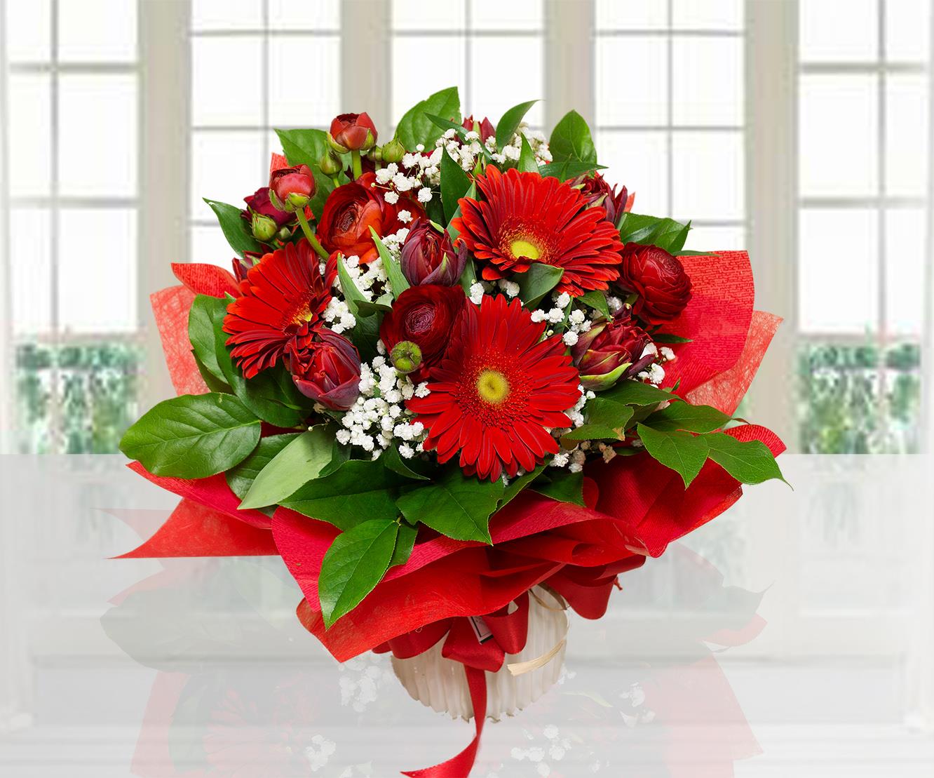 Rosso fuoco in questo bouquet per esprimere tanta passione