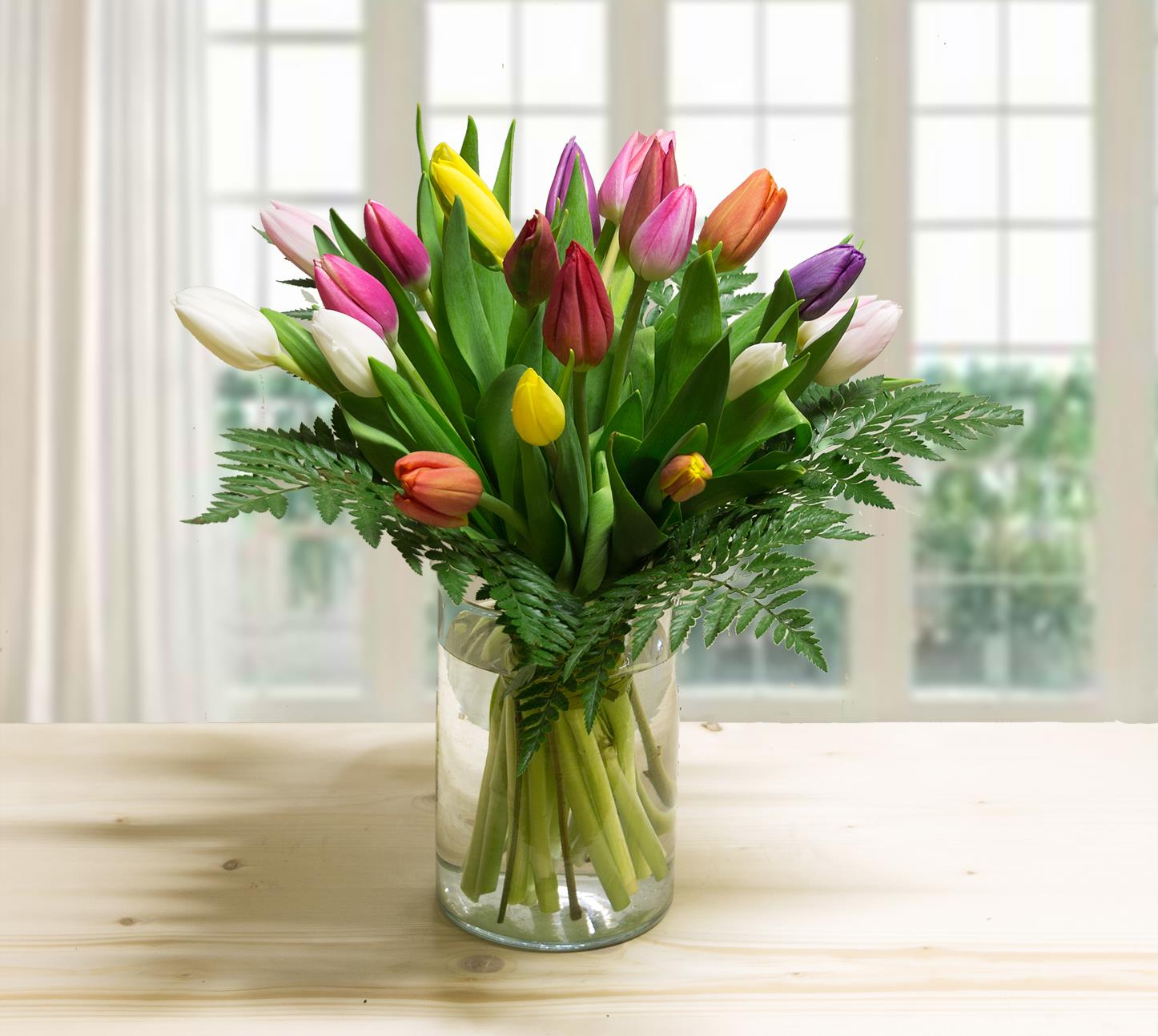 Porta la freschezza e l’allegria nella casa di chi vuoi con questo bellissimo mazzo di 20 tulipani colorati